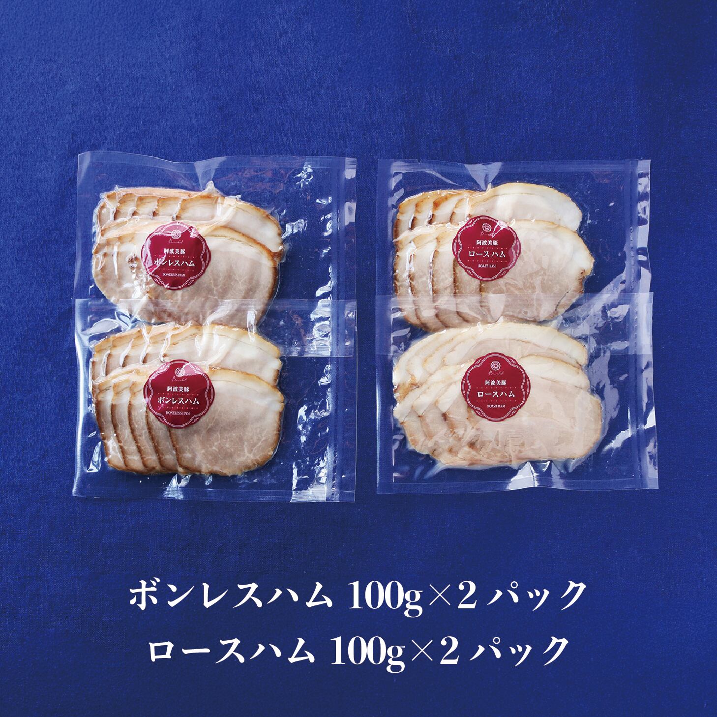 阿波美豚ロースハム・ボンレスハムは徳島県石井町で育てられたブランド豚「阿波美豚(あわびとん)」のロース肉、もも肉を使用しています。